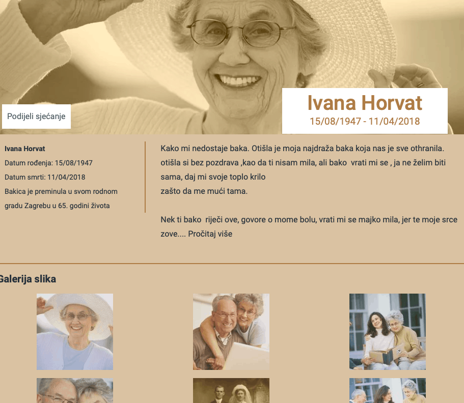 Otvorite svoju vječnu memorijalnu stranicu za najmilije. Prvo u Hrvatskoj!