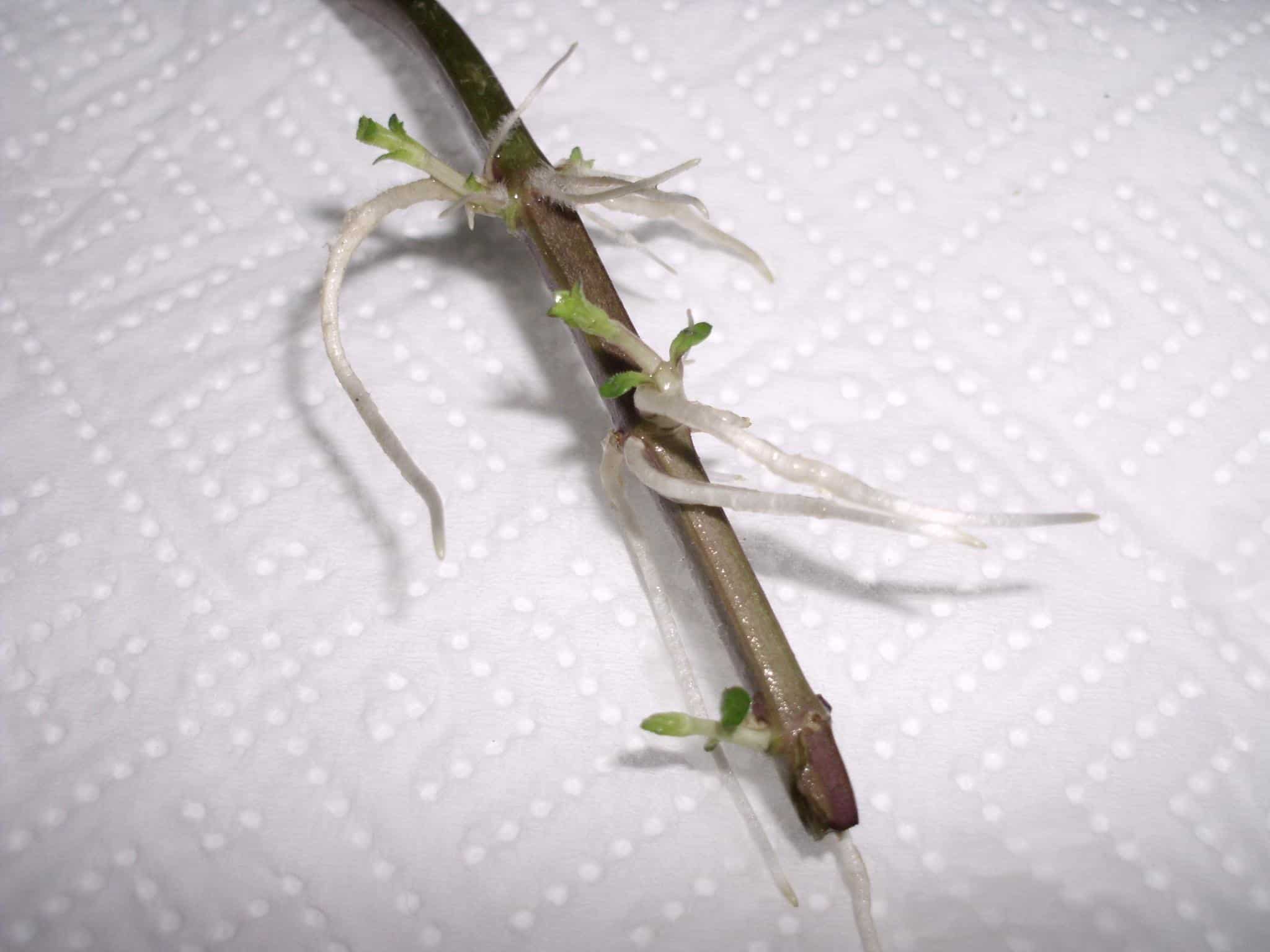 Za samo par dana dobit ćete ovo što sam ja dobila na ovim fotkama. Znači stabljike će razviti lijepe, mlade bijele korijenčiće, a neke po mogućnosti (druga fotka) iz postojećih lisnih pazušaca, pustit će nove mlade izboje, buduće stabljike….