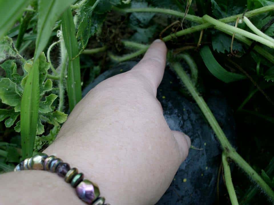 Postoji nekoliko znakova i mali trikovi kojima se može utvrditi tehnološka zrelost plodova. Dakle prvo na što trebamo skrenuti pozornost je prva vitica do ploda (prikazano na obje fotke). Ukoliko je ona potpuno suha i nema dlačica na glavnoj peteljci koja se spaja s plodom, plod bi trebao biti zreo. Namjerno kažem “trebao biti zreo” jer postoji još pokazatelja tehnološke zrelosti. Npr. ako prstima kuckamo/ lupkamo po plodu, trebao bi zvoniti kao da je šupalj, ako je taj zvuk tup, lubenica još nije zrela.