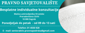 Besplatno pravno savjetovalište dostupno je u Matici umirovljenika Hrvatske. Matica umirovljenika Hrvatske otvorila je