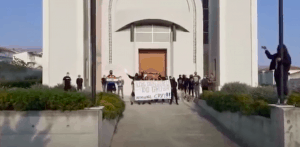 Grupa mladića popodne je došla ispred crkve na Barutani, gdje su jutros napadnuta novinarka