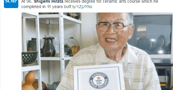 EDUKACIJA – Japanac Shigemi Hirata s 96 godina ušao je u Gunnesovu knjigu rekorda, pošto je nedavno postao najstariji fakultetski diplomac na svijetu s diplomom Fakulteta primijenjenih umjetnosti u Kjotu, prenijeli su ovih dana lokalni mediji u Japanu.