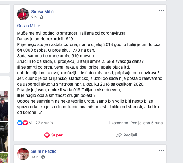Prenosimo sa Goran Milić Facebook profila njegovu zadnju objavu o sličnim podacima.