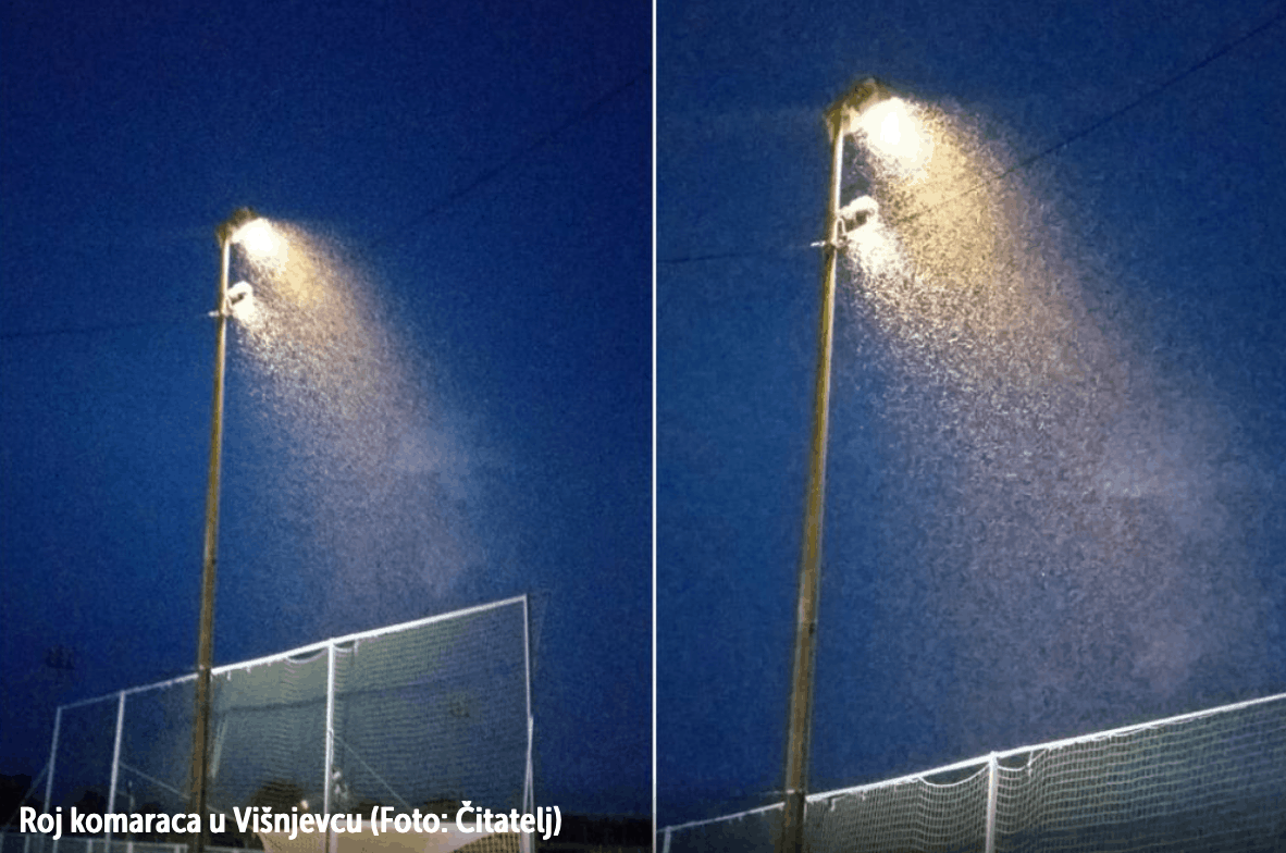 Društvenim mrežama proširila se stravična snimka roja komaraca oko stupa javne rasvjete na Športsko rekreacijskom centru u Višnjevcu. Slična je situacija, tvrde Osječani, posvuda po gradu.