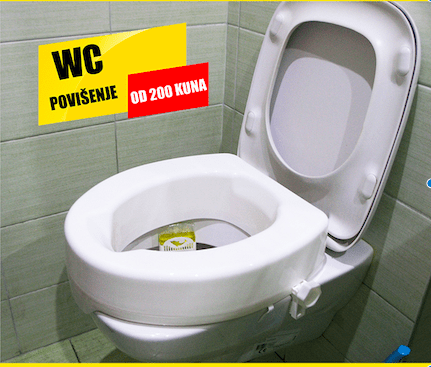 2.       WC povišenje – jednostavna montaža na sve postojeće WC školjke bez alata, sa i bez poklopca. Za osobe s problemima pri sjedanju i dizanju s WC školjke i one koji trebaju dodatnu pomoć. Od 200 i 280 kn